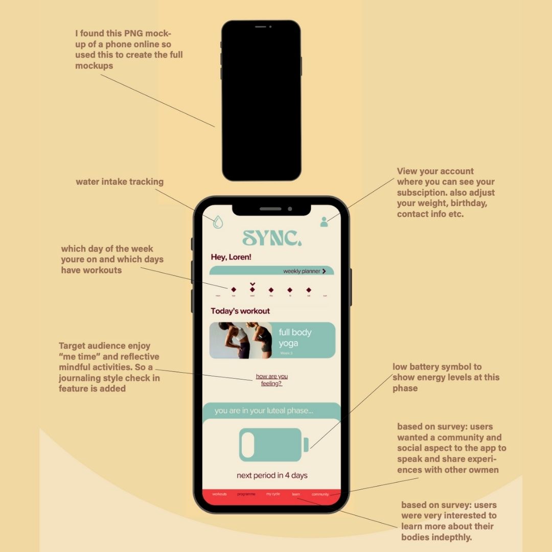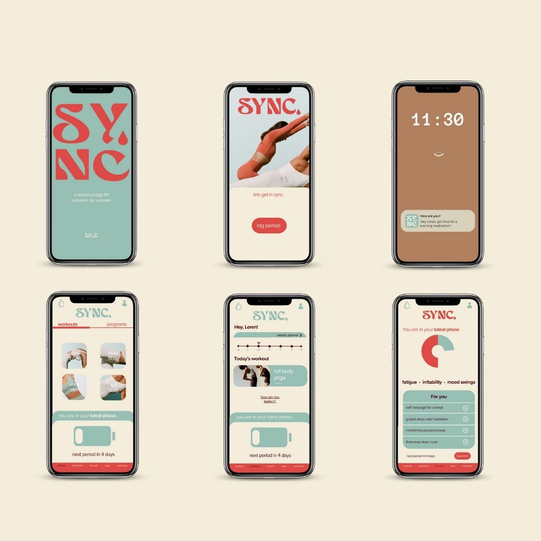 Sync. is an AI-integrated fitness app concept. Designed to help young women train in tune with their hormonal cycle.