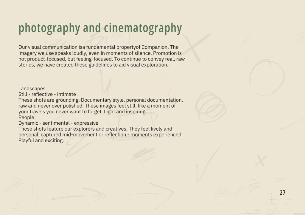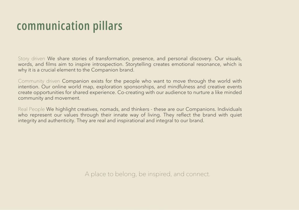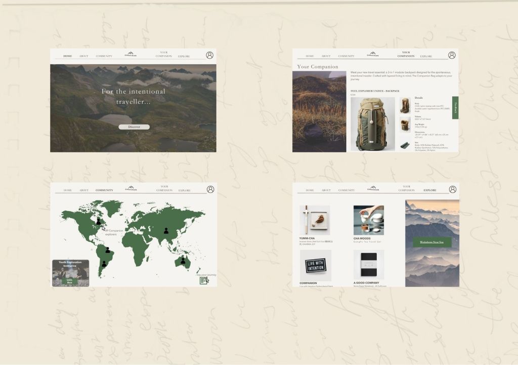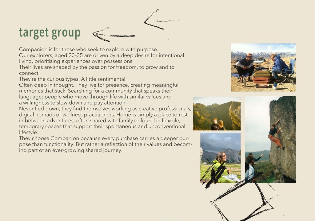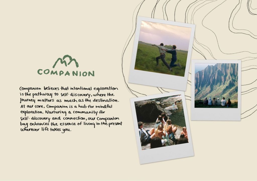 Companion is a fictitious travel-gear brand grounded in community, connection, and moments of stillness. Developed as part of an academic branding project, the brand explores how young people navigate movement, identity, and belonging in a contemporary cultural landscape.