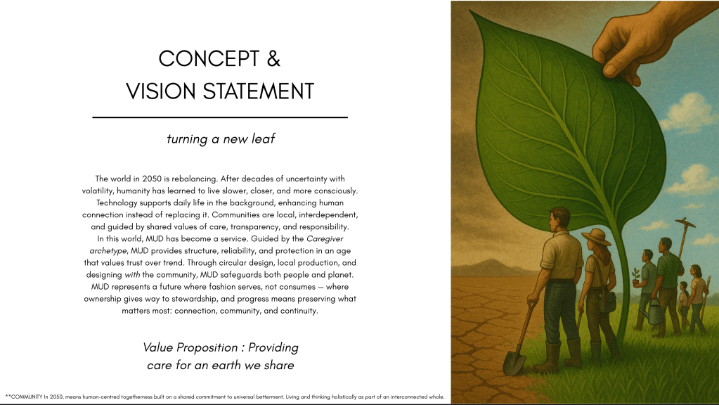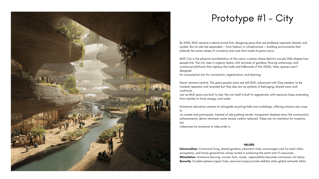 We were tasked with developing a future-thinking concept for MUD Jeans, free to take form beyond traditional product design. Grounded in the brand’s core commitment to circularity, we imagined what MUD could become if its values were scaled into an entire way of living.